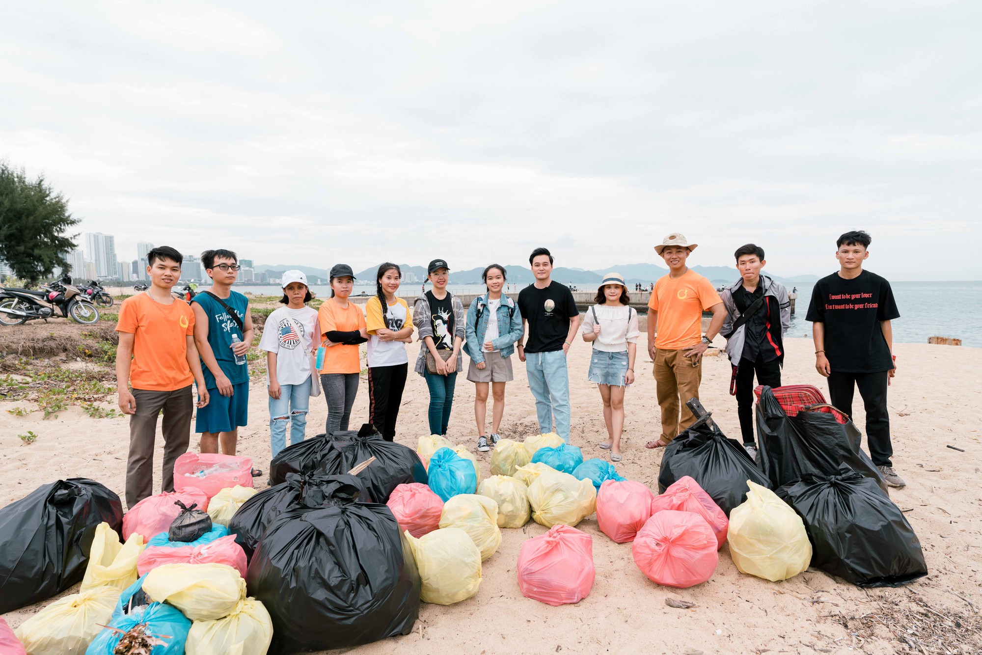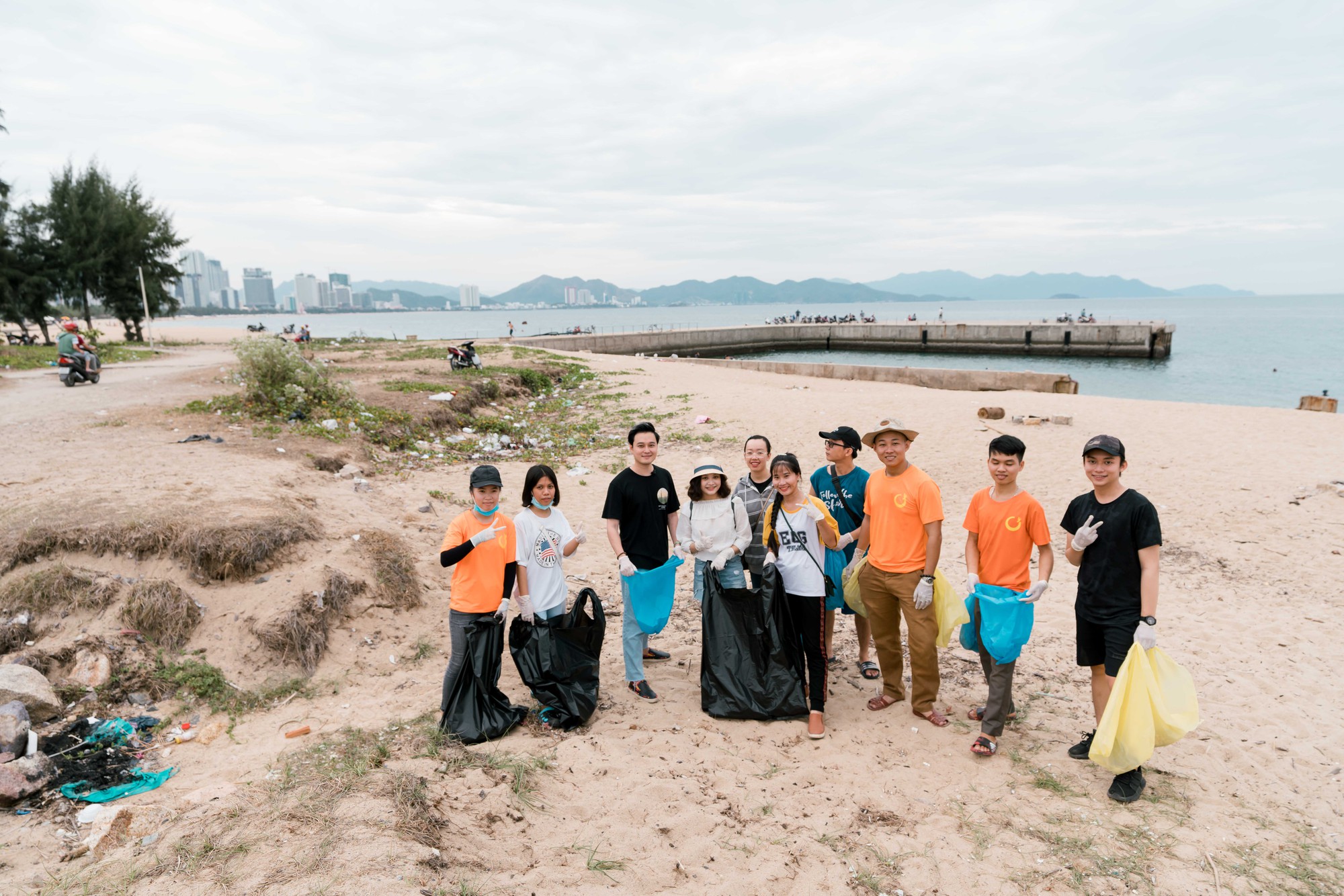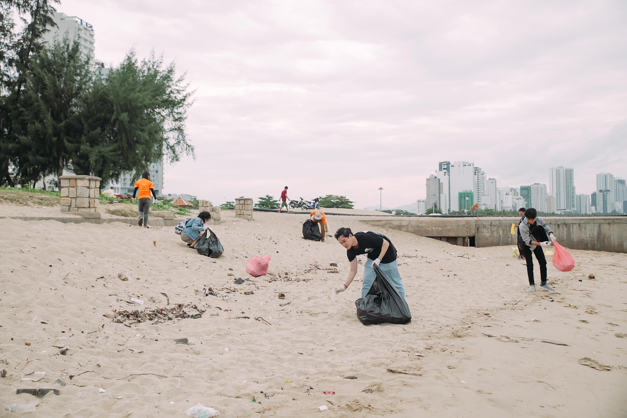 Ca sĩ Quang Vinh xắn tay áo cùng thu gom rác với các bạn trẻ tại Nha Trang